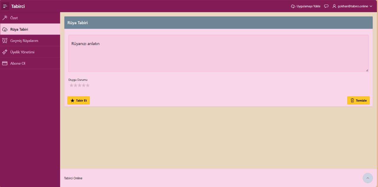 tabirci.online interprets dreams from symbolic, psychological and religious perspectives using artificial intelligence technology.
